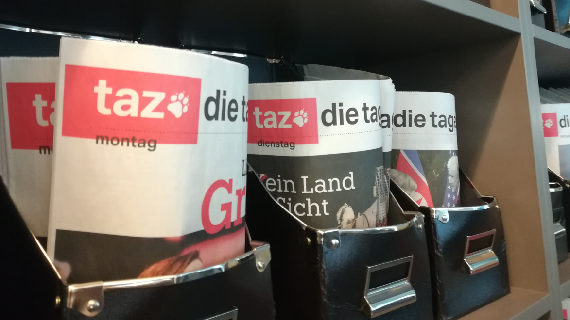 A taz szerkesztőségében a támogatók akár lekvárt és mosódiót is vásárolhatnak