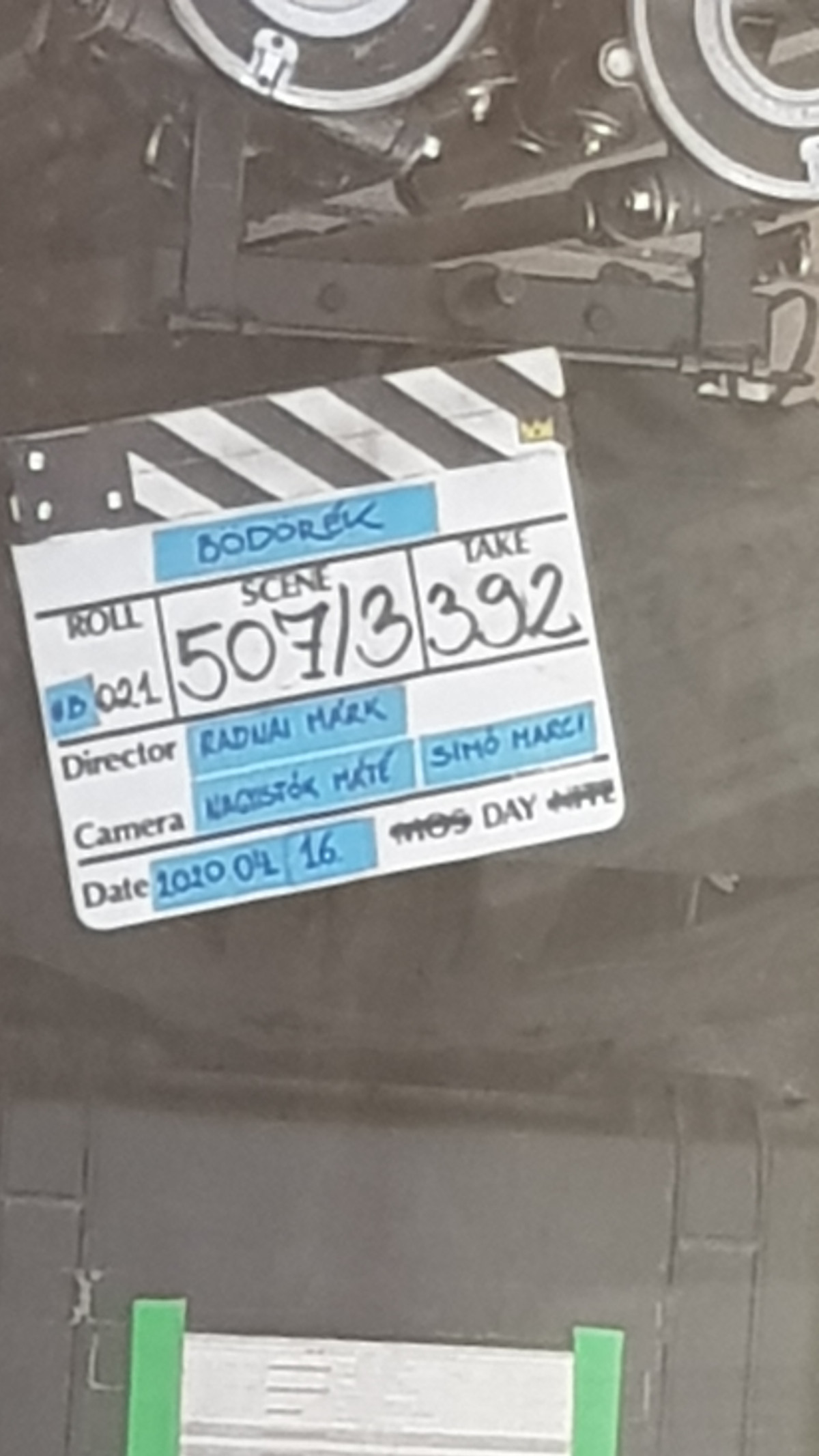 Csapó tábla felülről fényképezve az Egyszer volt Budán Bödör Gáspár (Bödörék) tegnapi forgatásán. Fotó: Media1 / olvasónktól