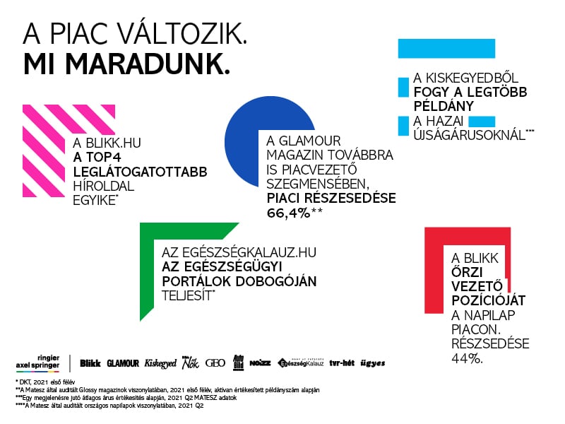 Július végi bejelentésében az egyik legnagyobb hazai médiavállalat, a Ringier Axel Springer két anyacége közzétette döntését: a korábban 50 százalékos részesedésű svájci Ringier Csoport megvásárolja a német Axel Springer fennmaradó 50 százaléknyi részvényét és ezzel hamarosan kizárólagos tulajdonosa lesz annak a kiterjedt hazai médiaportfóliónak, amely a Blikk, a Kiskegyed és a GLAMOUR magazin, az EgészségKalauz.hu és a Noizz.hu mellett számos gasztro, ismeretterjesztő, autós, rejtvény- és tv műsorújságot, illetve bookazine-t tartalmaz. A Ringier közel három évtizede van jelen Magyarországon és a nemrég bejelentett tranzakció kapcsán is hangsúlyozta elkötelezettségét a kelet-európai, azon belül a magyar piac iránt.
