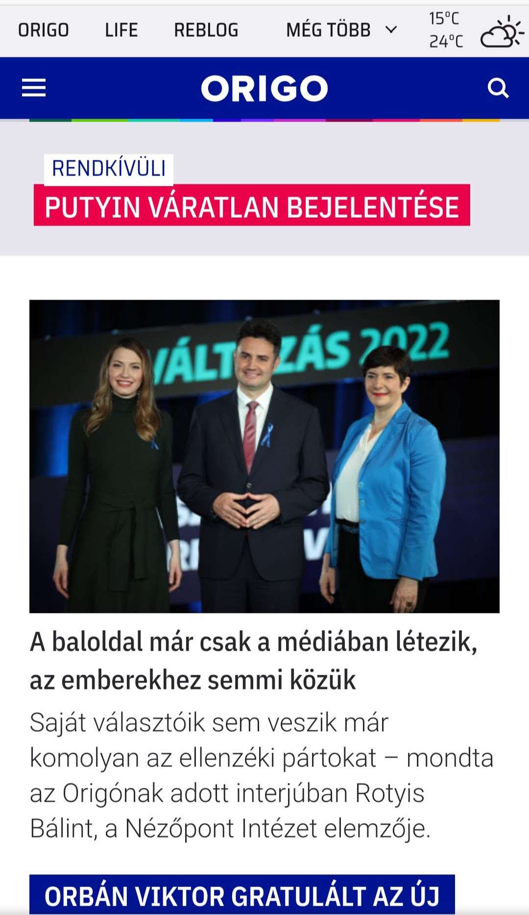 Néhány napja egyébként a 444 megkérdezte Gulyás Gergelyt, a Miniszterelnökséget vezető minisztert arról, mit gondol a kormány arról, ami a 2018-ban egy kormányrendelettel nemzetstratégai jelentőségűvé minősített KESMA / Mediaworks médiabirodalomhoz tartozó Origón folyik, vagyis hogy az orosz propagandát szajkózzák. Gulyás válaszában arról beszélt, hogy a kormánynak nincs köze ehhez.