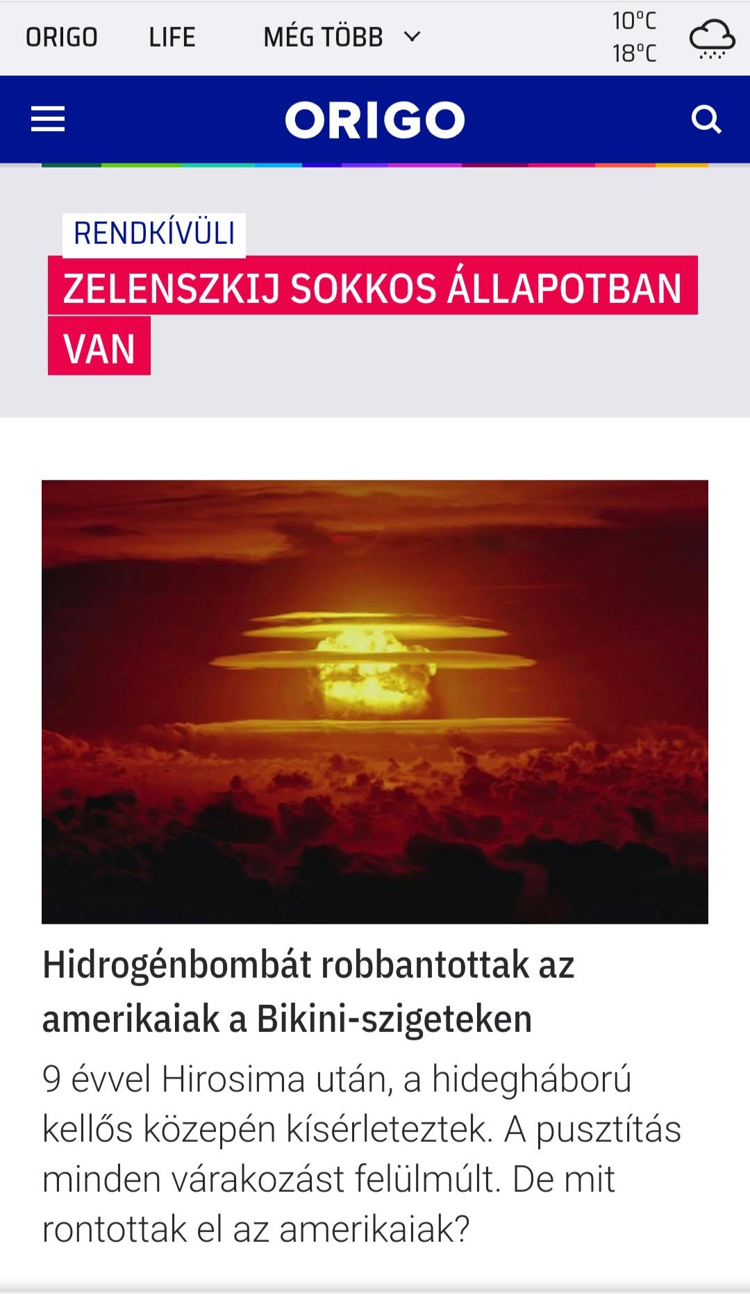 Azonban mint azt az alábbi, Péter nevű Media1-olvasó által készített fotógalériából látni fogjuk, ezek az esetek egyáltalán nem számítanak egyedülállónak az Origónál, ahol mindennaposak a hasonló rendkívüli (ál)hírek. Közös jellemzőjük, hogy az oroszokat áldozatként mutatják be az egyébként általuk indított háborúban (például ilyen manipulatív és nem ritkán minősítő jelzőket is tartalmazó címadásokkal: „Így provokálják az oroszokat”, „Megvan az eddigi legőrültebb oroszellenes ötlet”). Az ukrán elnök követeléseit és terveit (illetve szinte mindent, ami Zelenszkijhez kapcsolódik) „elképesztőnek” mutatják be az origo.hu munkatársai.