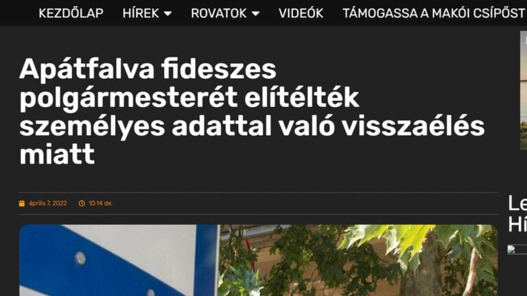 Apátfalva fideszes polgármestere szerint nem tartozott volna a közre, hogy őt elítélték személyes adattal való visszaélés miatt.