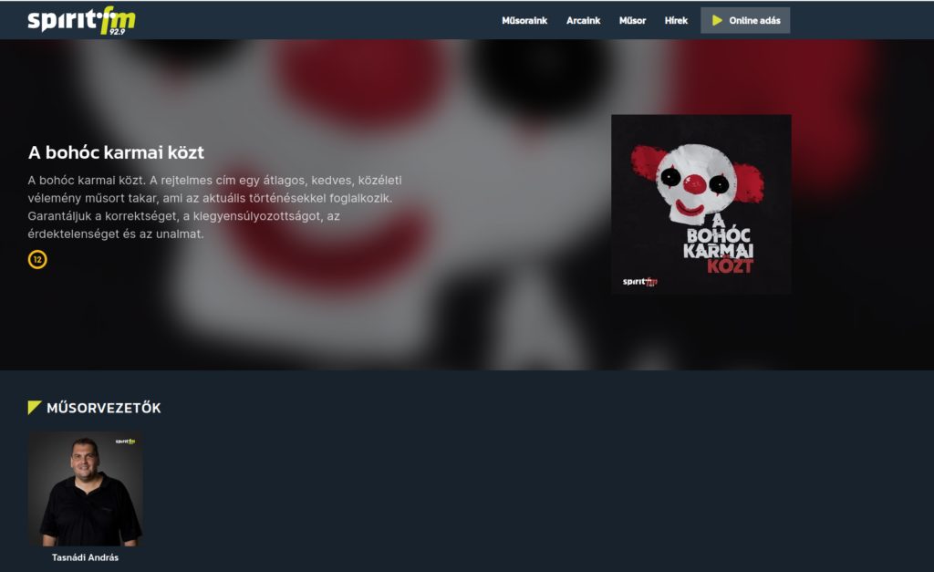A bohóc karmai közt a Spirit FM honlapján