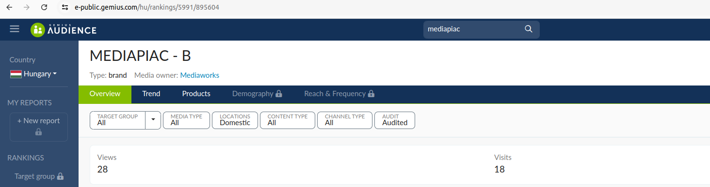 Ilyen előzmények után várjuk most az Eunt Domus Kft. tevékenységéről és eredményeiről szóló fejleményeket, vajon legújabb médiavállalata sikeresebb lesz-e a Médiapiacnál. A Médiapiacot egyébként a DKT e.gemius mérés szerint kedden egy nap alatt 28, azaz huszonnyolc alkalommal (!) nyitották meg (Views, 28), és 18 visitset mértek az oldalnak – vagyis úgy tűnik, gyakorlatilag az olvasottsága egy középiskolai osztály létszámához hasonlítható.