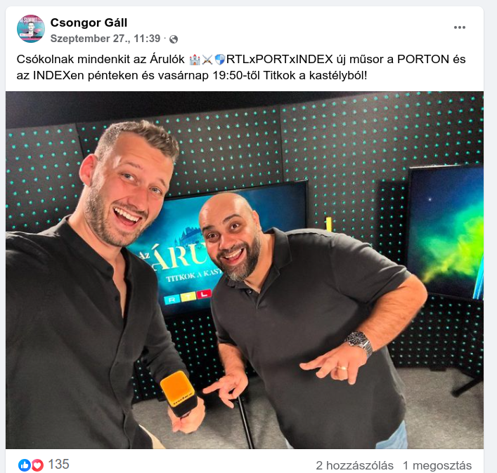 „Csókolnak mindenkit az Árulók RTLxPORTxINDEX új műsor a PORTON és az INDEXen pénteken és vasárnap 19:50-től Titkok a kastélyból!”