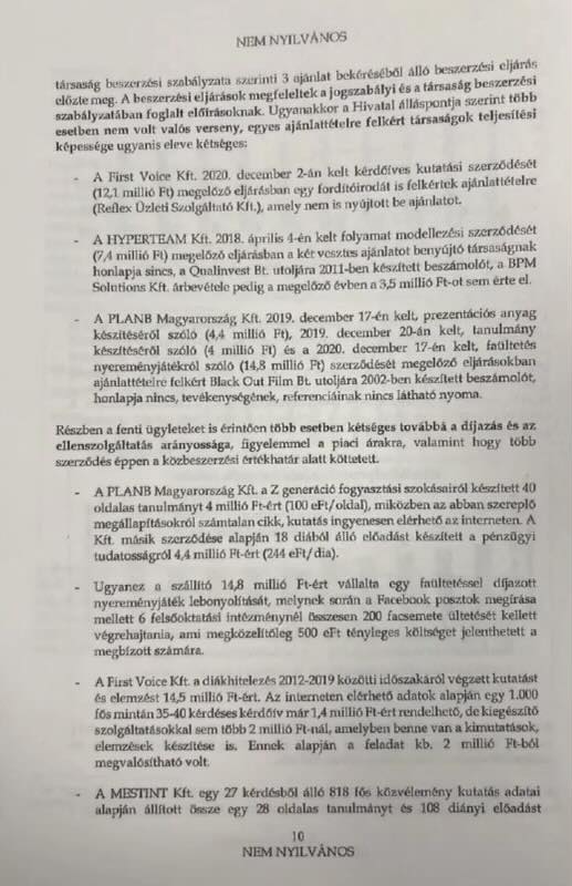 A KEHI szerint a PlanB drágán dolgozott: egy 40 oldalas – kétes minőségű – tanulmányt a Z-generációról 4 millió forintért készített el (ez 100 ezer forint/oldalt jelent), egy másik esetben pedig 4,4 milliót kért egy 18 diából álló előadásért. De a KEHI szerint egy faültetéssel kapcsolatos projektet is 14,8 millióért végzett el nagyjából 500 ezer forint helyett. A PlanB esetében tehát azt már korábban lehetett tudni, hogy Magyar Péter akkori feleségének, Varga Juditnak adtak kommunikációs tanácsokat. Viszont most lapunk úgy értesült, hogy 2019 nyarától a cégnél foglalkoztatták Magyar Mártont, a Tisza Párt elnökének öccsét, aki a napokban a Kontroll Média Szolgáltató Kft. tulajdonosaként jelent meg a médiapiacon.
