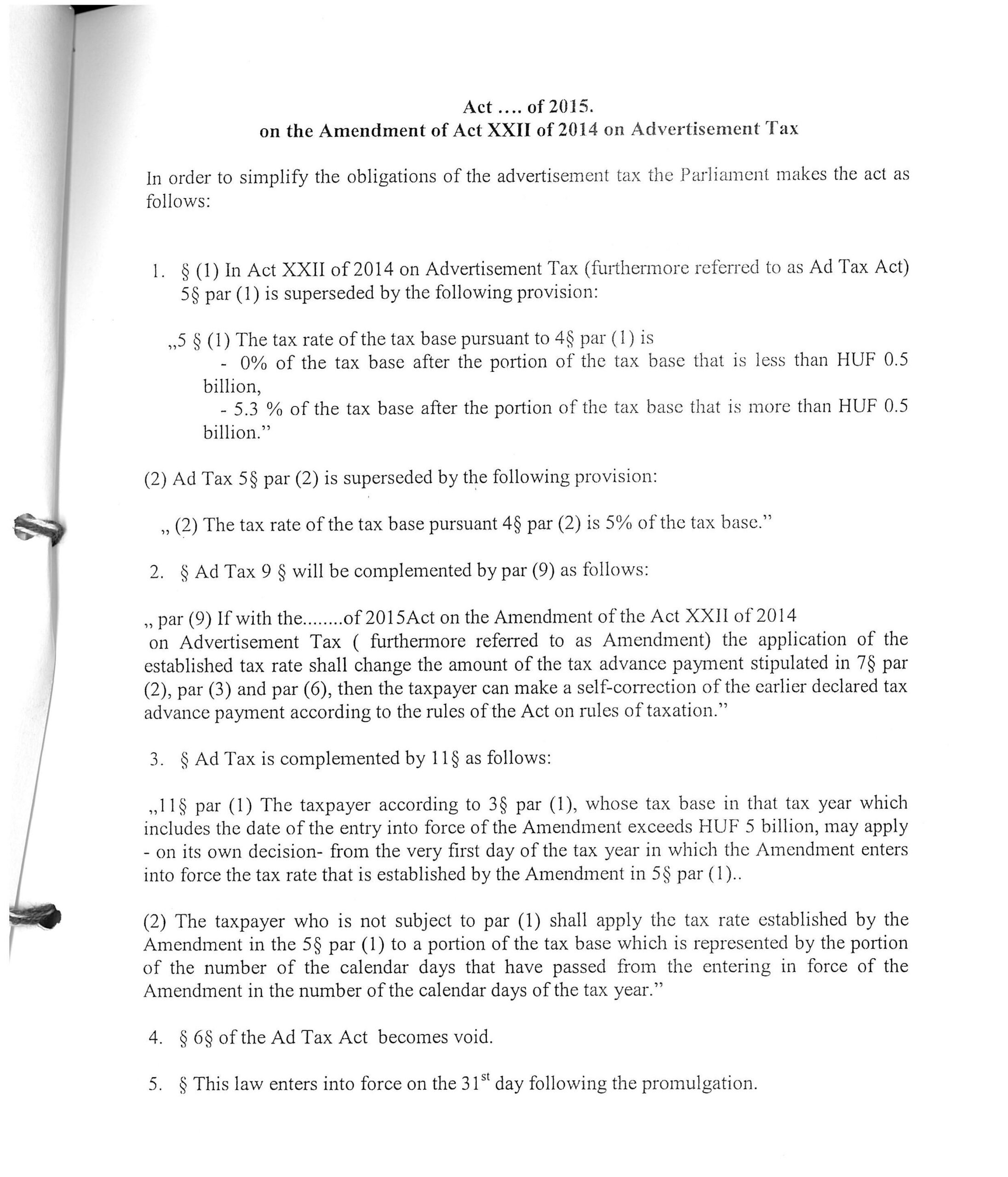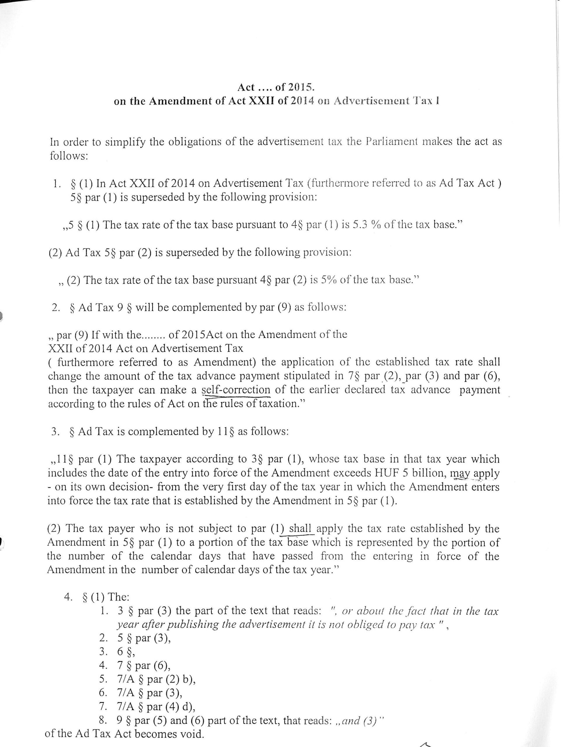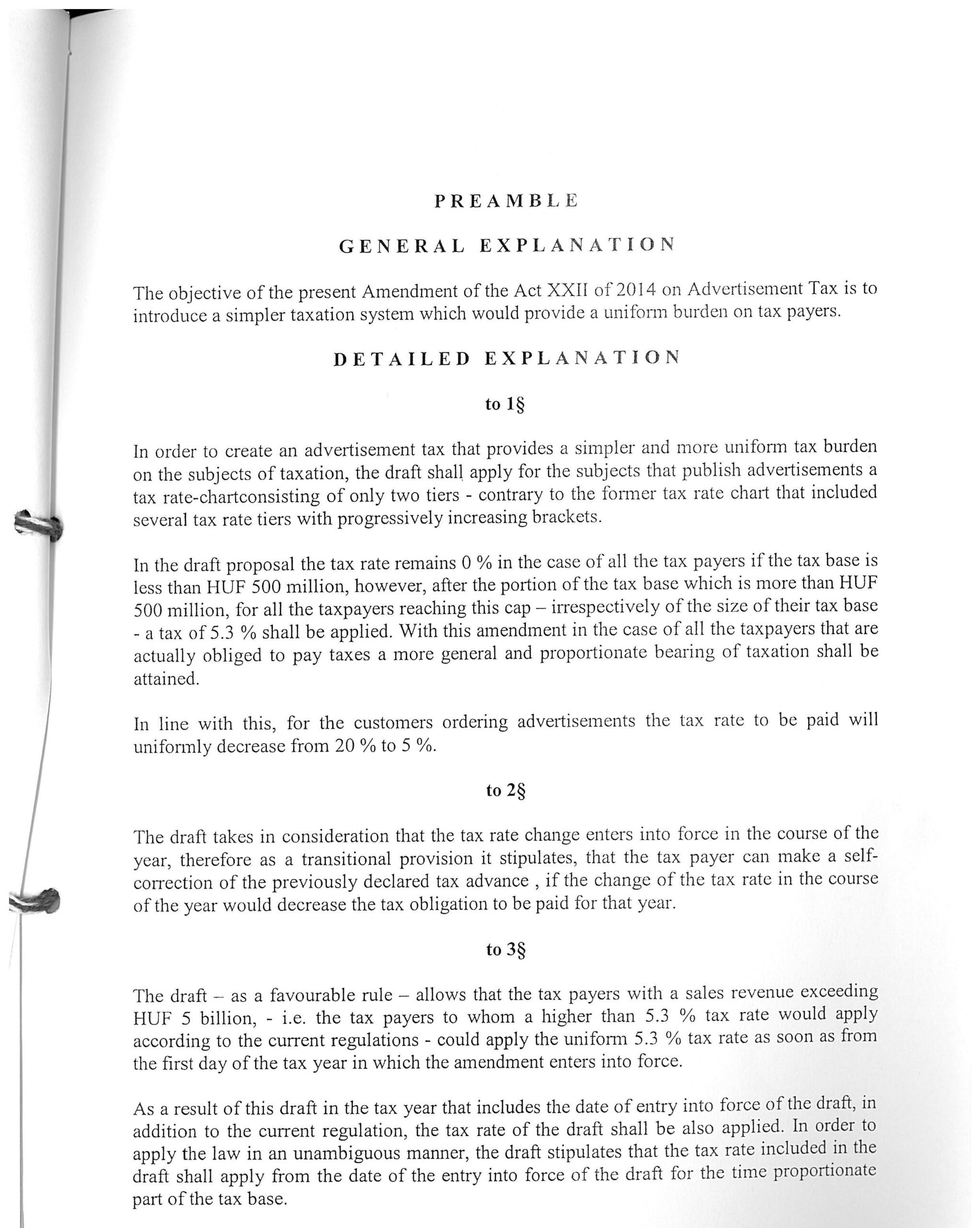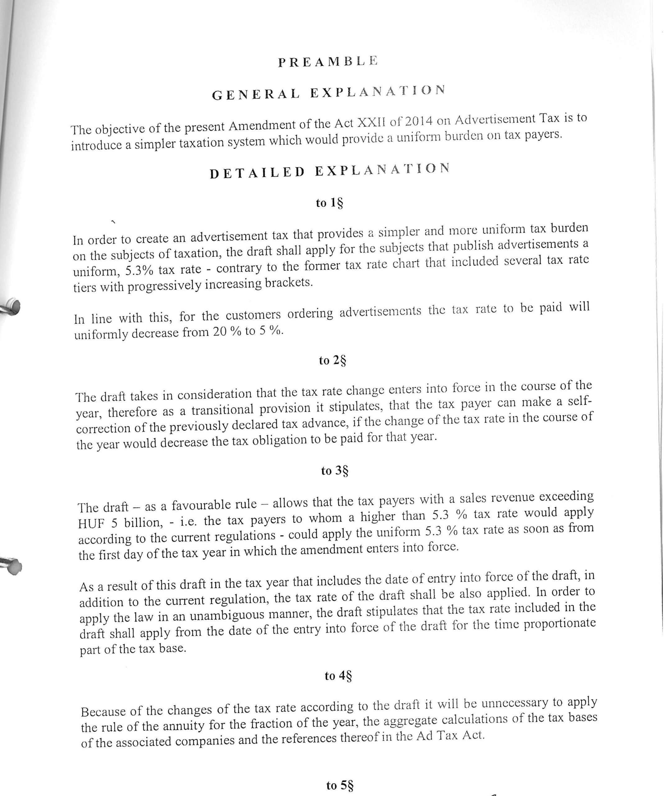 Az RTL-nek egyébként már 2014 decemberében a törvénytervezet akkori változatai angol nyelvű fordításban is rendelkezésre álltak A és B verzióban egyaránt – ezt a 2015. január 29-én magyarországi közjegyzői hitelesítéssel ellátott, a Media1 birtokában lévő dokumentumok, e-mailes bizonyítékok is igazolják. Vagyis előbb került közjegyzői hitelesítés alá a reklámtörvény módosításának tervezete, minthogy az Országgyűlés elnökéhez L. Simon László fideszes képviselői egyéni képviselői indítványként benyújtotta volna a törvényjavaslatot. Íme.