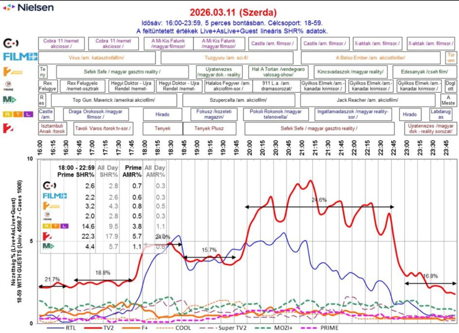 A Pokoli rokonok 2. évada azonban a Nielsen Közönségmérés adatai alapján nem hozta az elvárt nézettségi mutatókat, például a múlt héten szerdán is súlyosan kikapott a TV2-n látható Séfek Séfek című gasztrovetélkedőtől.