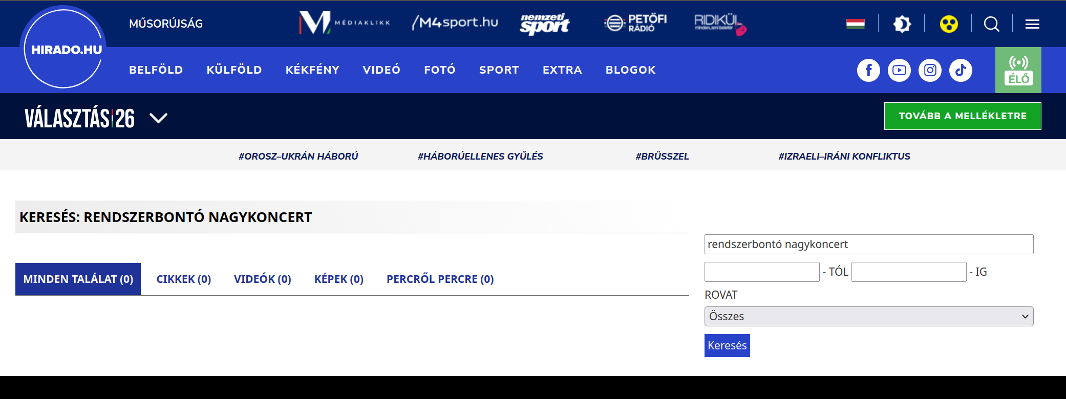A hirado.hu keresője egyetlen találatot sem hoz ki a Rendszerbontó Nagykoncert kifejezésre